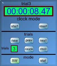 1) Clock mode. This is the primary mode. Any number of time trials can be recorded.