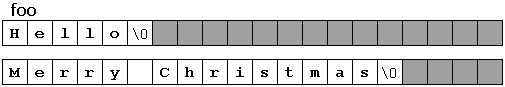 In this case, the array of 20 elements of type char called foo can be represented storing the character sequences "Hello" and "Merry Christmas" as: